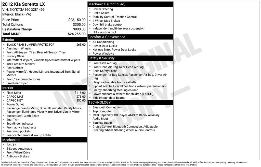 - Vehicle Name: Kia Sorento