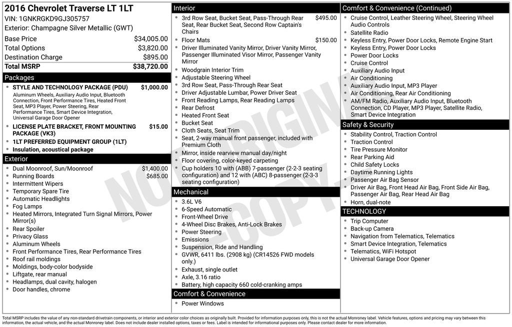 - Vehicle Name: Chevrolet Traverse