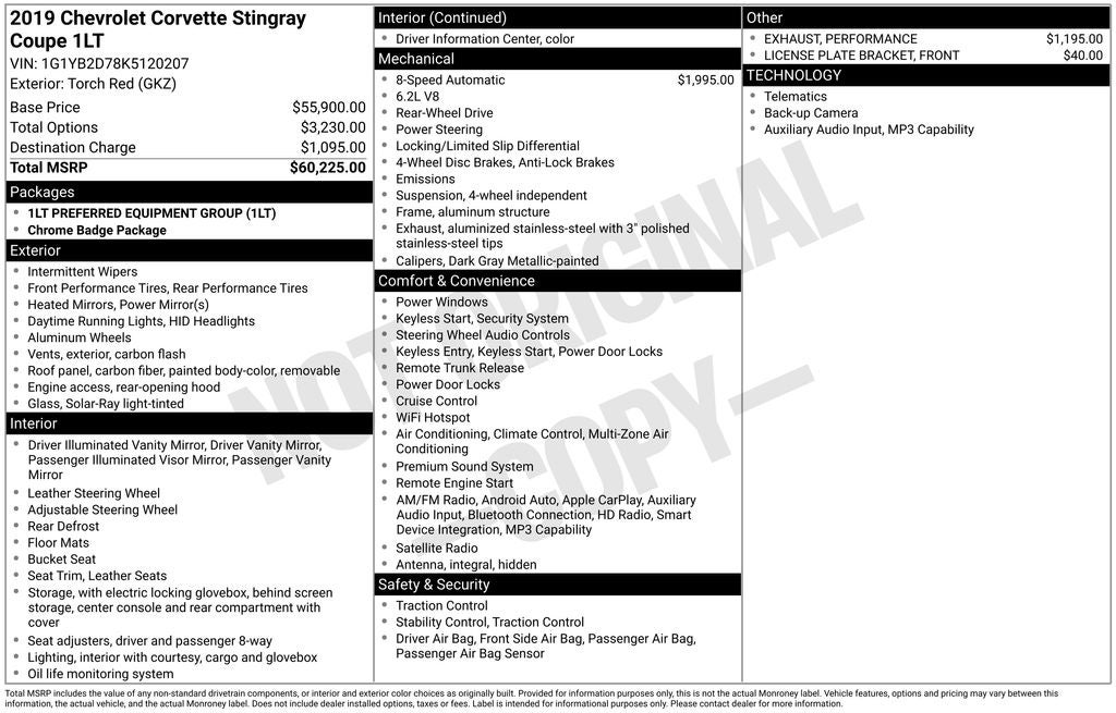 Torch Red 2019 Chevrolet Corvette Stingray 1LT 6.2L V8 RWD 8 Speed Paddle Shift with Automatic Modes