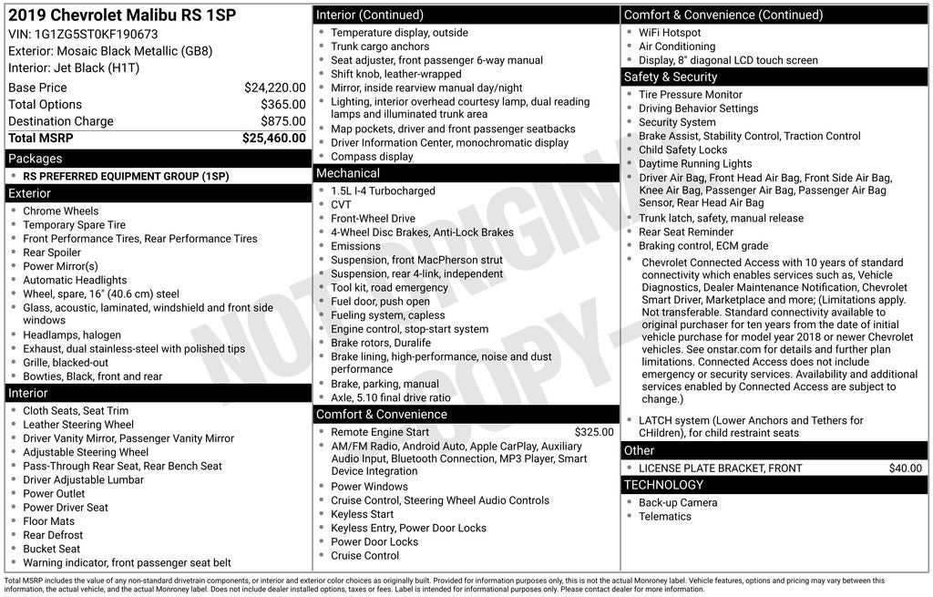 Whether you're commuting to work, embarking on a road trip, or simply enjoying the daily drive, the 2019 Chevrolet Malibu RS is the perfect companion. With its stylish design, efficient performance, and impressive technology, this sedan is sure to exceed your expectations.
