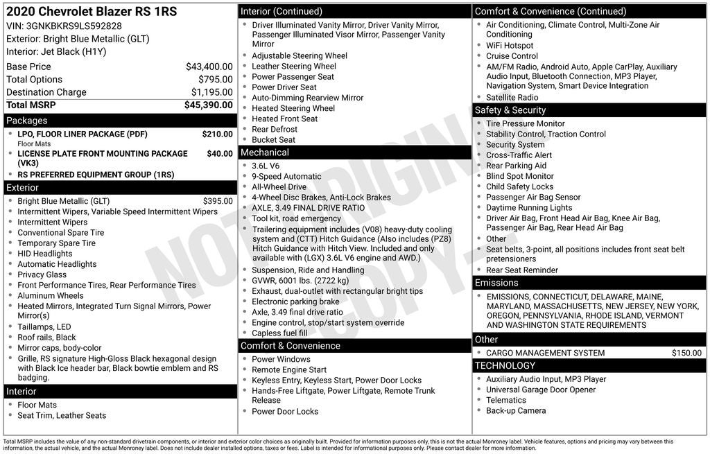 - Vehicle Name: Chevrolet Blazer