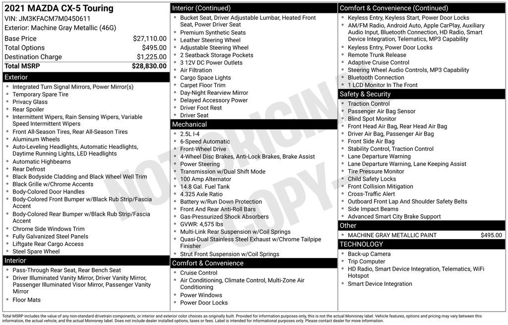 2021 Mazda CX-5 Touring SKYACTIV® 2.5L 4-Cylinder DOHC 16V Machine Gray Metallic