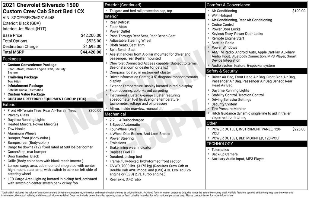 - Custom Value Package includes (PCX) Custom Convenience Package, (ZLA) Infotainment Package and (Z82) Trailering Package