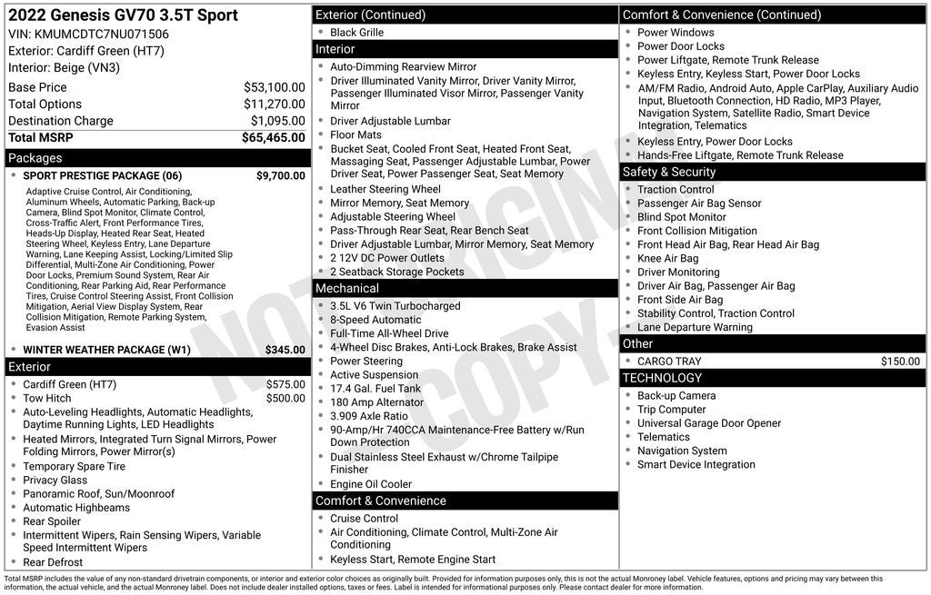 - Vehicle Name: Genesis GV70