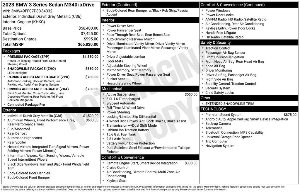 Step inside, and you'll be surrounded by premium materials and advanced features that elevate the driving experience. The Harman/Kardon surround sound system, BMW Curved Display, and heated steering wheel are just a few of the luxurious touches that make this M340i xDrive a true standout in its class.