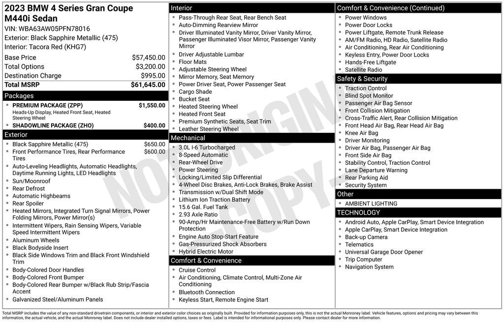 - Vehicle Name: BMW 4 Series