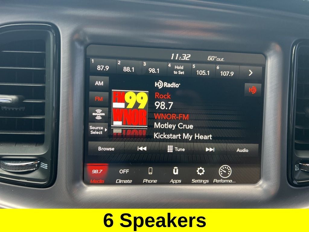 - 6 Speakers, AM/FM radio: SiriusXM, GPS Antenna Input, HD Radio, Integrated Center Stack Radio, Media Hub (2 USB, AUX), Radio data system, Radio: Uconnect 4C w/8.4 Display, Shark Fin Antenna, SiriusXM Radio Service, SiriusXM Satellite Radio