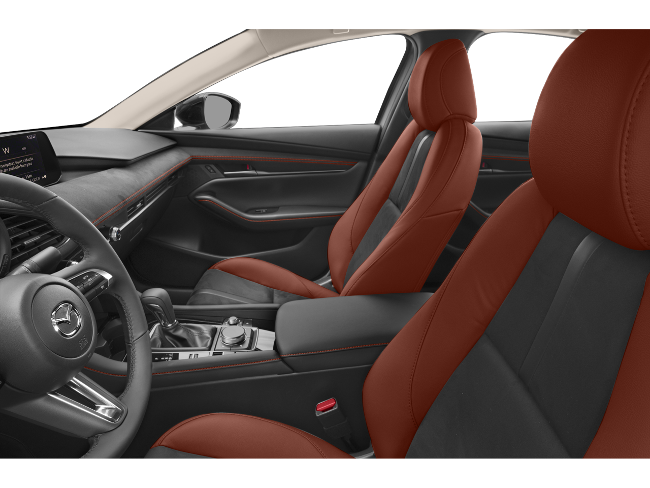 The interior of this Mazda3 is equally impressive, with a host of premium features that elevate the driving experience. Luxurious leather seating, a power driver's seat, and a sunroof create an inviting and comfortable cabin. The MAZDA CONNECT infotainment system, complete with Apple CarPlay and GPS navigation, keeps you connected and entertained on the go.