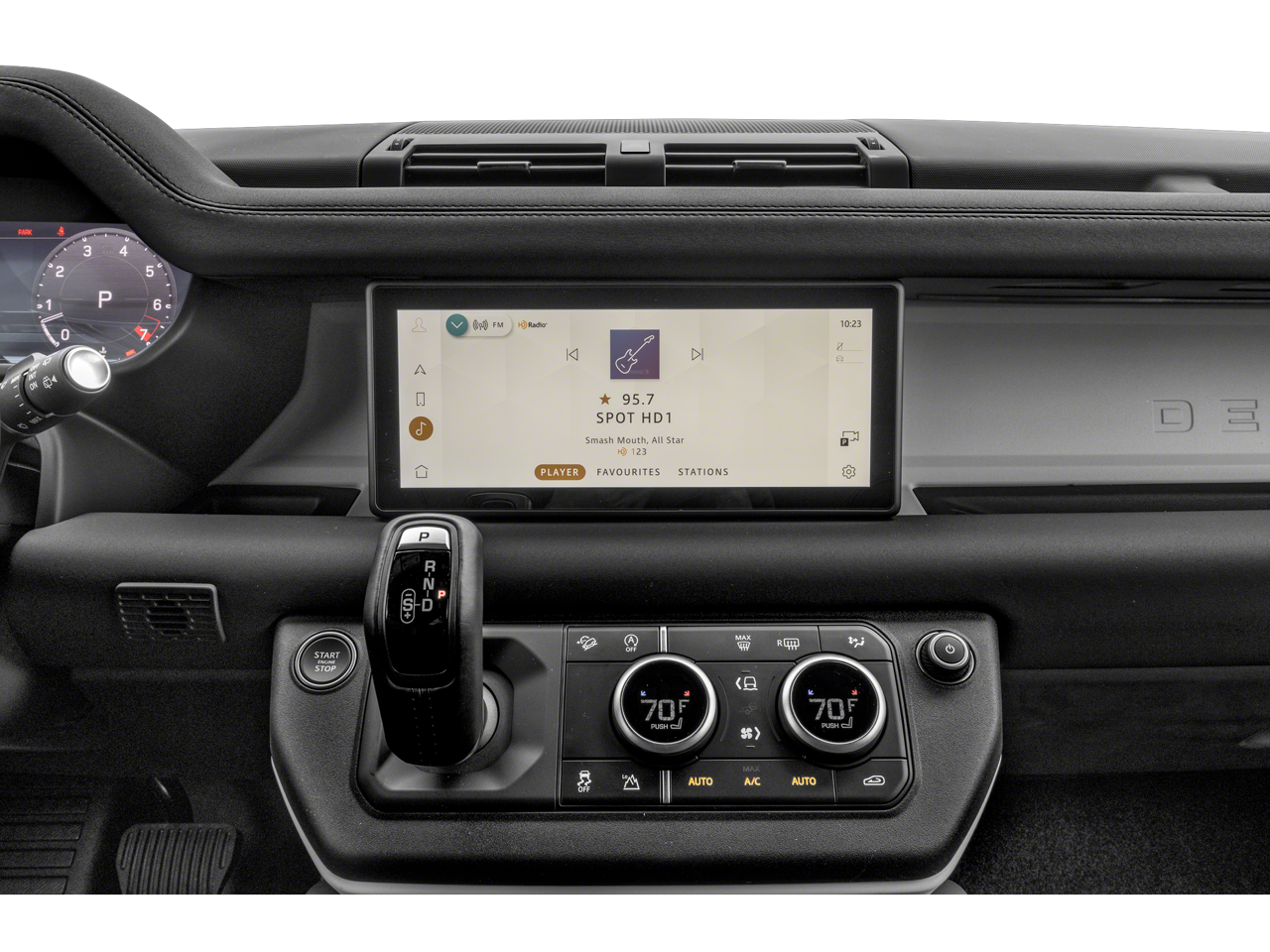 Step inside the Defender 110 S, and you'll be greeted by a meticulously crafted interior that seamlessly blends premium materials and advanced technology. The Grained Leather Seat Trim and Heated Front Seats provide unparalleled comfort, while the 400W 11 Speaker Meridian Sound System and Connected Navigation PIVI Pro keep you entertained and connected on the go.